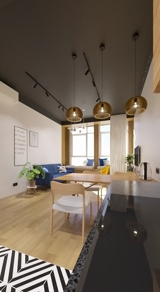 Ночное небо в дизайне интерьера для молодой семьи из двух человек стало очень смелым и необычным решением.